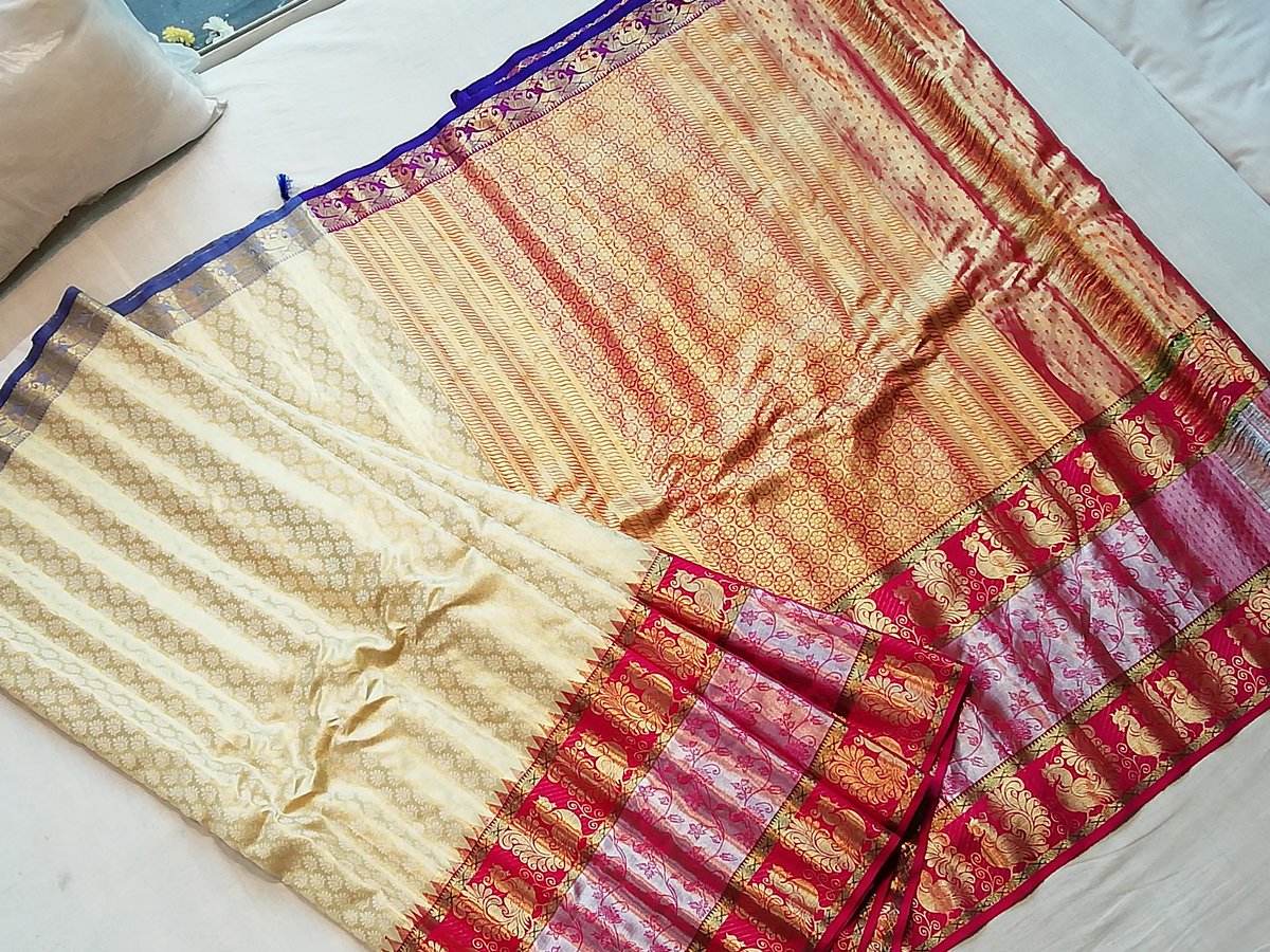 Gadwal Silk Sarees Directly From Weavers By the end of 2012, the weavers succeeded in weaving the mangalagiri saree with 'zari' border.
