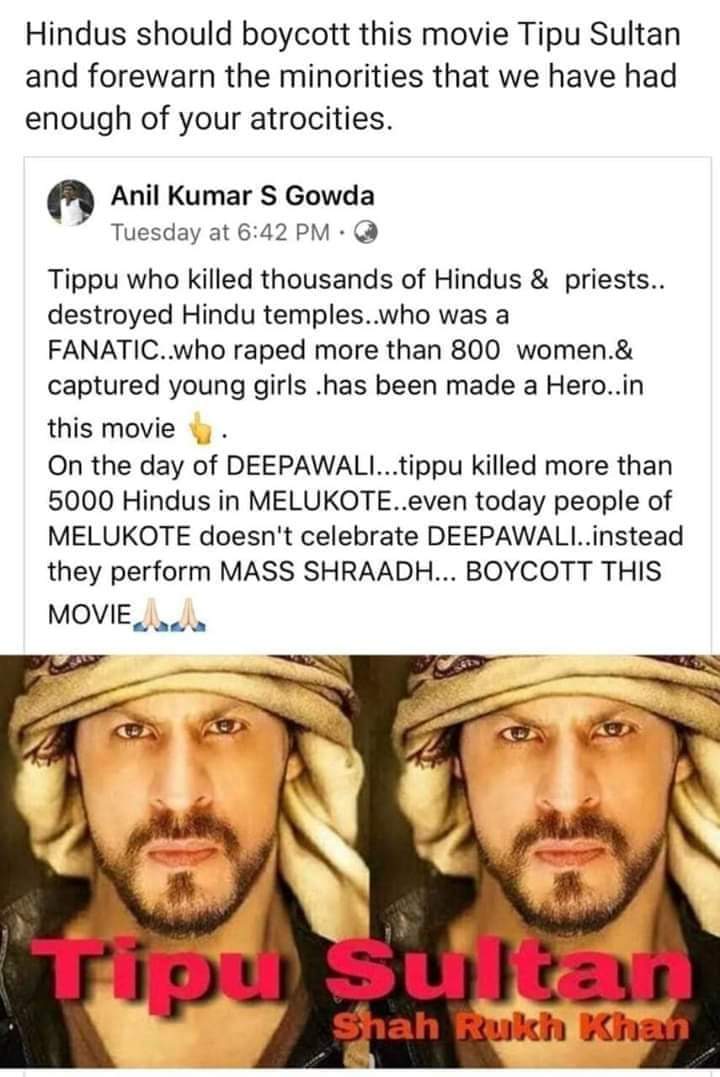 Actor Shahrukh Khan Upcoming Film Tipu Sultan Fake Poster Viral In Social Media Fake News अगल फ ल म म ट प स ल त न क क रद र न भ ए ग श हर ख ख न प स टर व यरल द न क भ स कर I have discussed about the idea of doing a movie on tipu with rajinikanth, because tipu's story was suppressed by british.