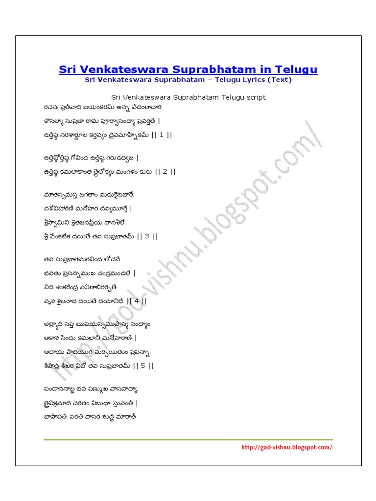 Venkateswara Suprabhatam Lyrics In Telugu / Suprabhatam is a collection of hymns or verses recited early morning to awaken the deity in hinduism.
